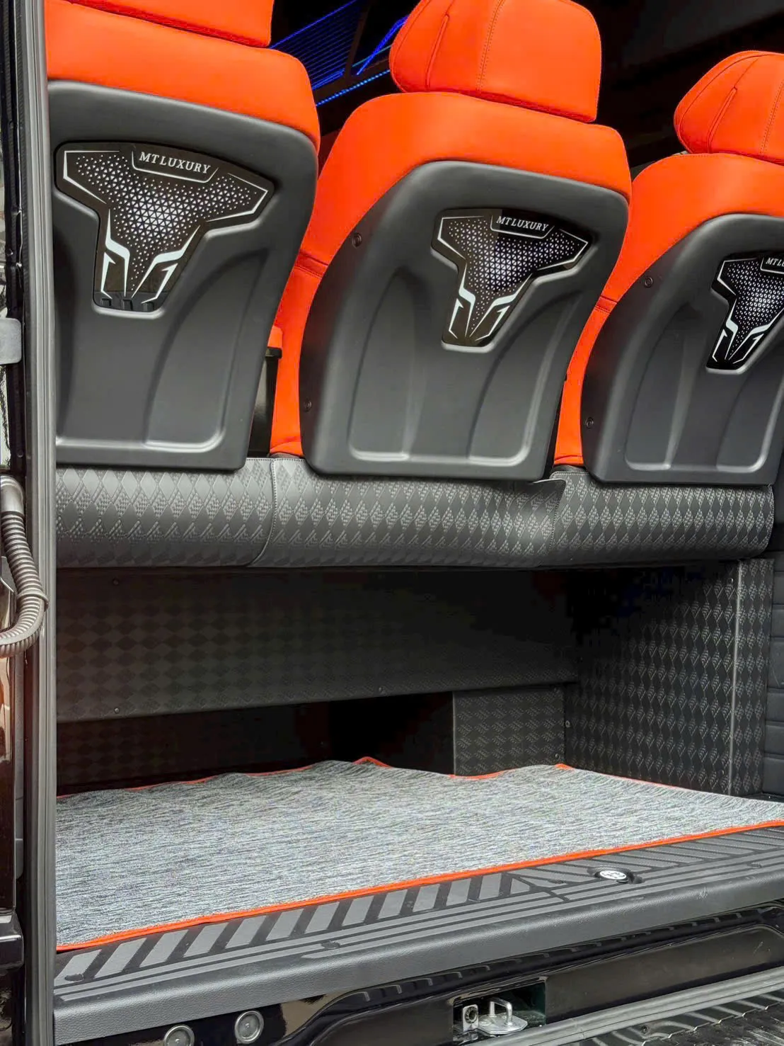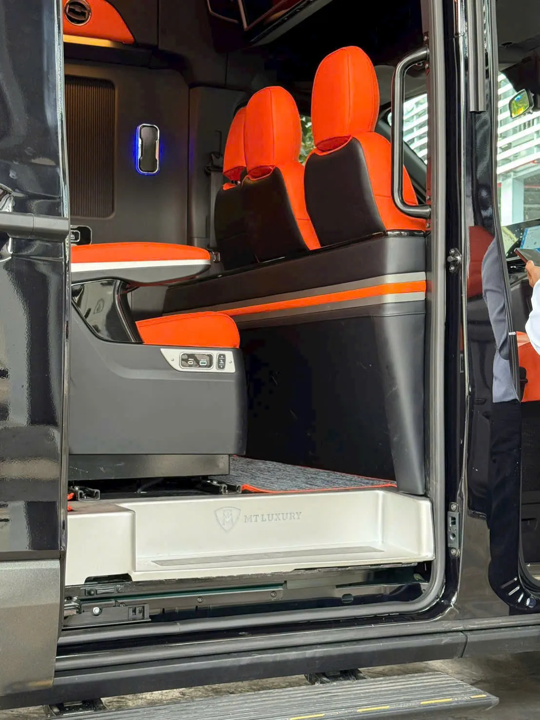 Khoang lái gồm 3 ghế độc lập (ghế tài + 2 ghế phụ bản đôi), cũng bọc da cùng màu với khoang VIP, mang lại sự đồng bộ và cao cấp trong toàn bộ không gian.